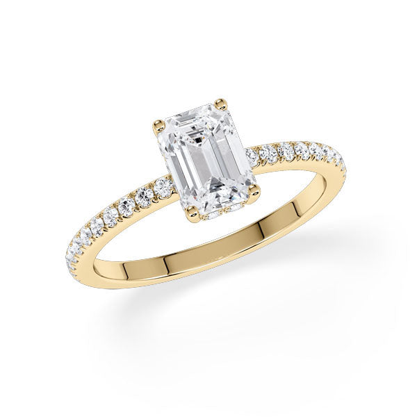 Verlobungsring Emerald Hidden Halo & Pavé Gelbgold/- 750 mit Diamant ab 1.00ct