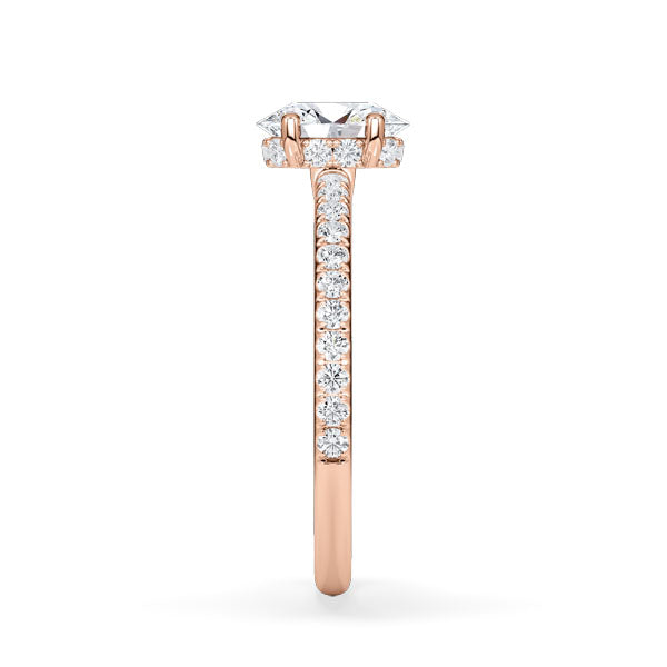 Verlobungsring Oval Hidden Halo & Pavé Rosegold/- 750 mit Diamant ab 0.50ct