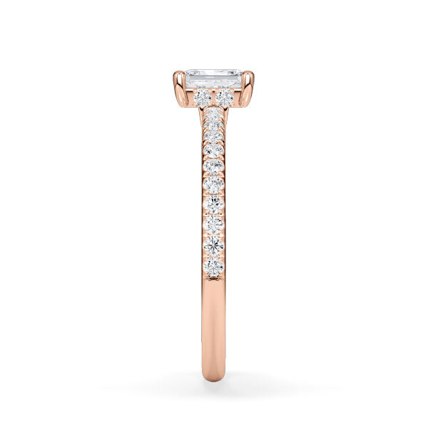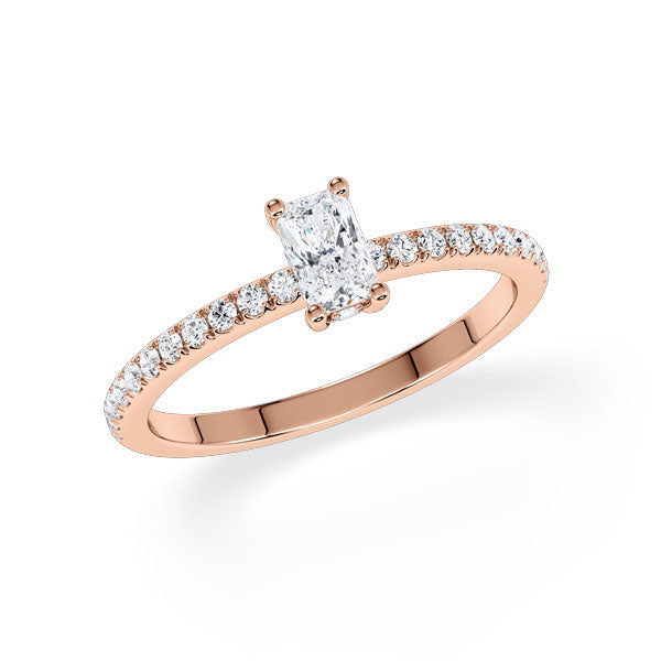 Verlobungsring Radiant Hidden Halo & Pavé Rosegold/- 750 mit Diamant ab 0.50ct