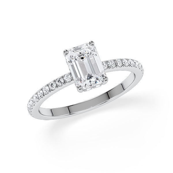 Verlobungsring Emerald Hidden Halo & Pavé Weißgold/- 750 mit Diamant ab 1.00ct