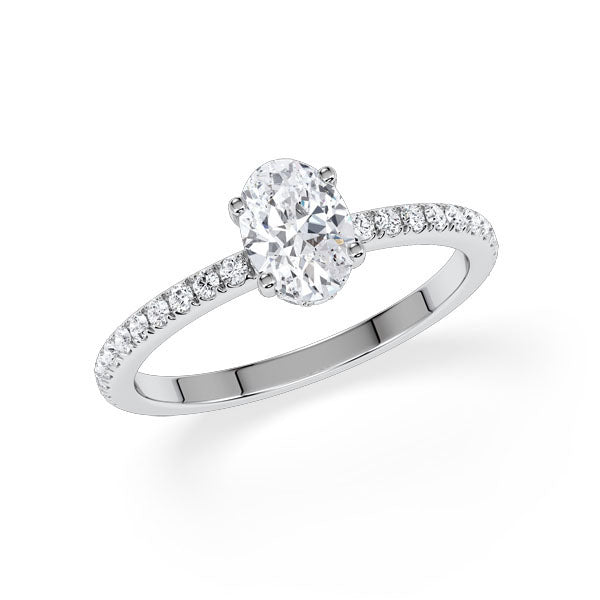 Verlobungsring Oval Hidden Halo & Pavé Weißgold/- 750 mit Diamant ab 0.50ct