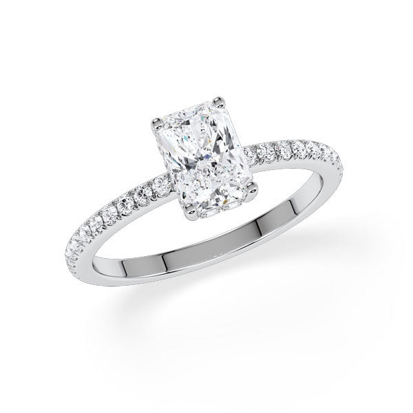Verlobungsring Radiant Hidden Halo & Pavé Weißgold/- 750 mit Diamant ab 1.00ct