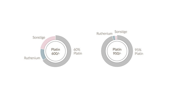 Die Vorteile von Platin mit seiner mondhellen Farbe und der einzigartigen Farbechtheit sind bestechend. So ist Platin besonders widerstandsfähig, trägt nicht ab und fasst Edelsteine extrem sicher. Mit seinen hypoallergenen Eigenschaften ist es auch bestens für Allergiker geeignet. Rubin bietet zwei verschiedene Platin-Legierungen an: das exklusive und besondersreine 950/- Platin sowie das günstigere 600/- Platin. Durch seine hohe Dichte hat es zudem eine sofort spürbare ganz besondere Haptik.