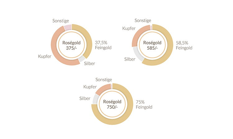 Der sanfte Goldton entsteht durch die Beigabe von Kupfer. Wird der Kupferanteil in der Goldlegierung leicht erhöht, erhält man Roségold, das mitunter auch als Mittelgold oder Apricotgold bezeichnet wird. Rubin bietet den begehrten Goldton in den Legierungen375/-,585/- und750/- an. Und auch hier gilt die einfache Gleichung: Mit wachsendem Goldanteil steigt die Qualität und der Wert der Trauringe.