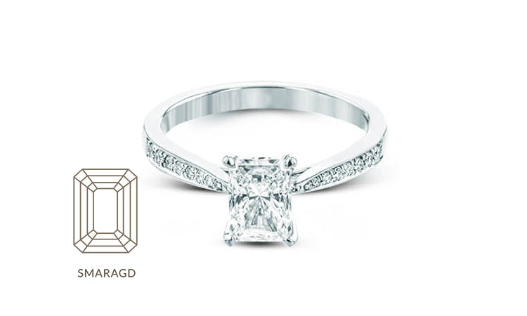 Wie es der Name schon vermuten lässt, wurde der Smaragd-Schliff mit seiner treppenförmigen Facette und der großen Tafel ursprünglich entwickelt, um die sehr bruchempfindlichen Smaragde zu schleifen. Erst später wurde diese Schliffform auf Diamanten übertragen.